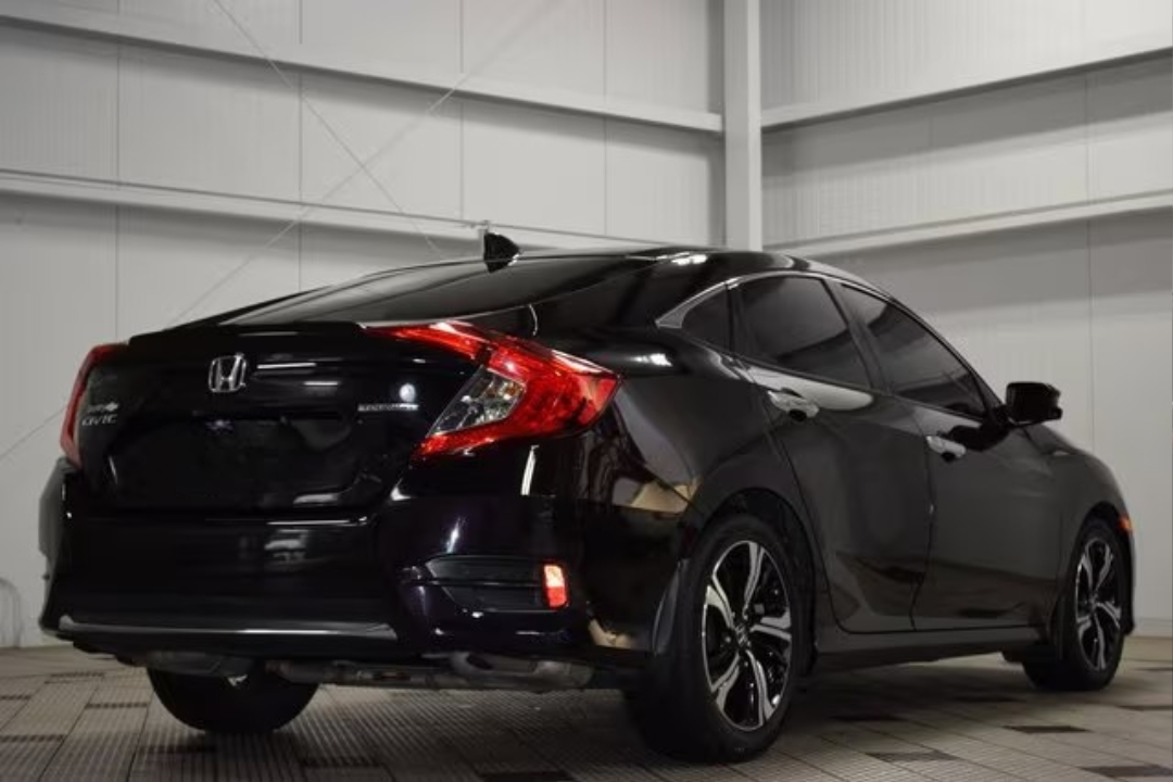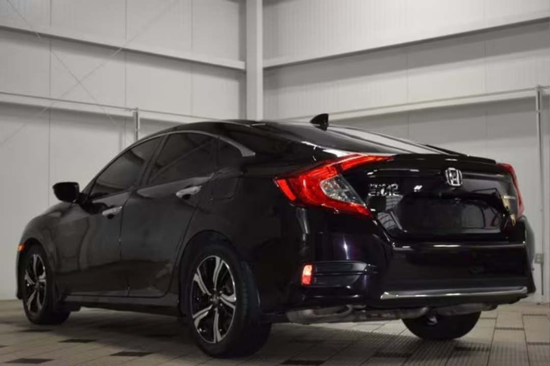 The 2016 Honda Civic Touring is a compact sedan that combines style, efficiency, and advanced technology. It features a front-wheel-drive (FWD) system and is powered by a 1.5-liter turbocharged 4-cylinder engine that produces 174 horsepower. This engine offers excellent fuel economy, making the Civic a great choice for those who prioritize saving on fuel. It runs on gasoline and provides a smooth, responsive driving experience while maintaining a comfortable ride for both city and highway driving.